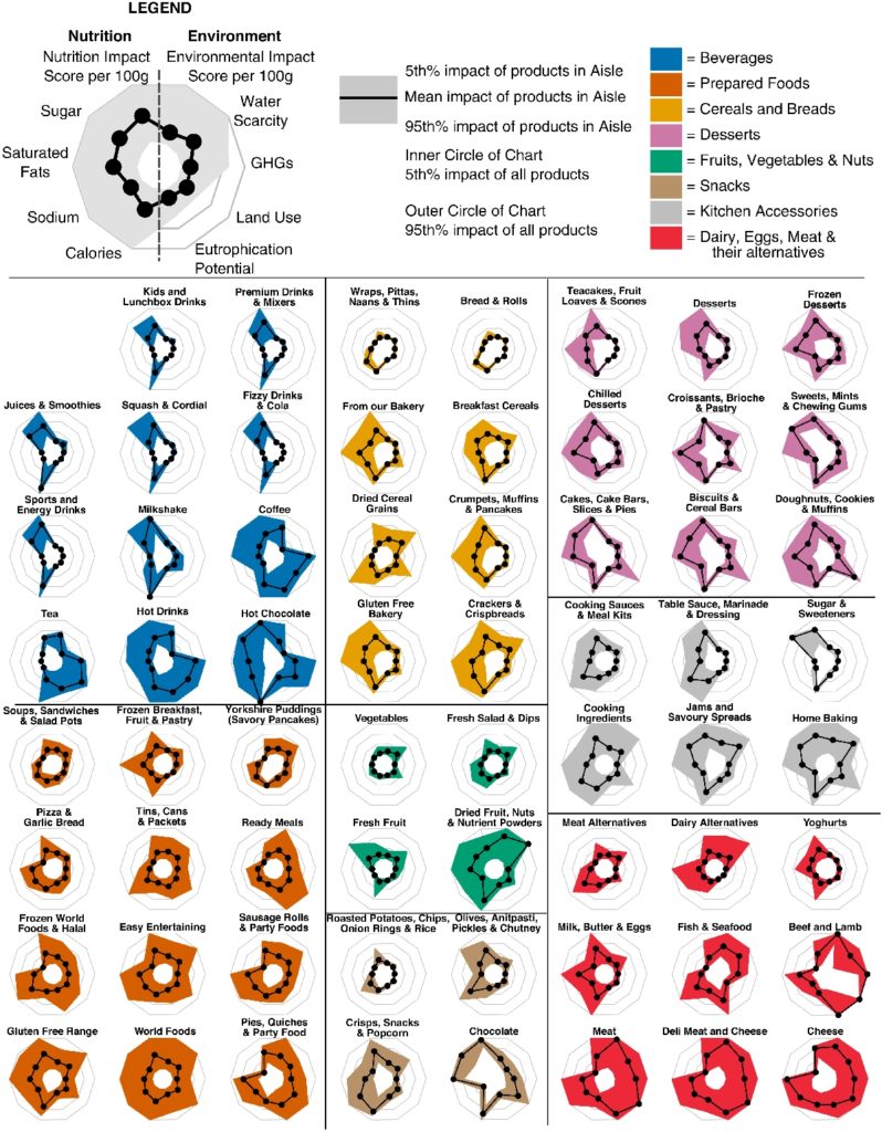 Die neue Studie nutzte öffentlich zugängliche Informationen, um Schätzungen der Umweltauswirkungen von 57.000 Lebensmittelprodukten abzuleiten, die den Großteil der in britischen Supermärkten verkauften Lebensmittel und Getränke ausmachen. Untersucht wurden: