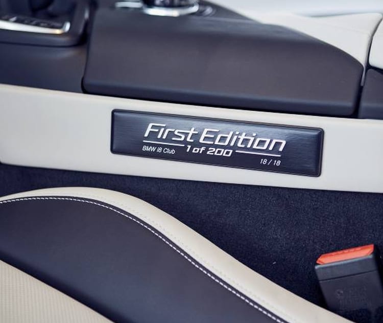 Die ersten 18 Fahrzeuge dieser First Edition wurden jetzt übergeben. Interieur-Sonderausstattungen wie Keramikapplikationen für die Bedienelemente, die Interieurleisten aus DryCarbon, das Hi-Fi Lautsprechersystem von Harman Kardon sowie die BMW i8 Logoprojektion im Fußraum und bei geöffneter Türe sind weitere Besonderheiten dieser exklusiven Edition.
