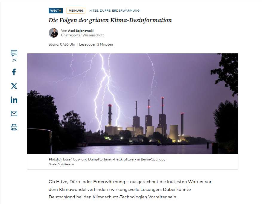 Axel Bojanowski, Chefreporter WELT Wissenschaft, beleuchtet die „Folgen der grünen Klima-Desinformation“. Ein Faktencheck.